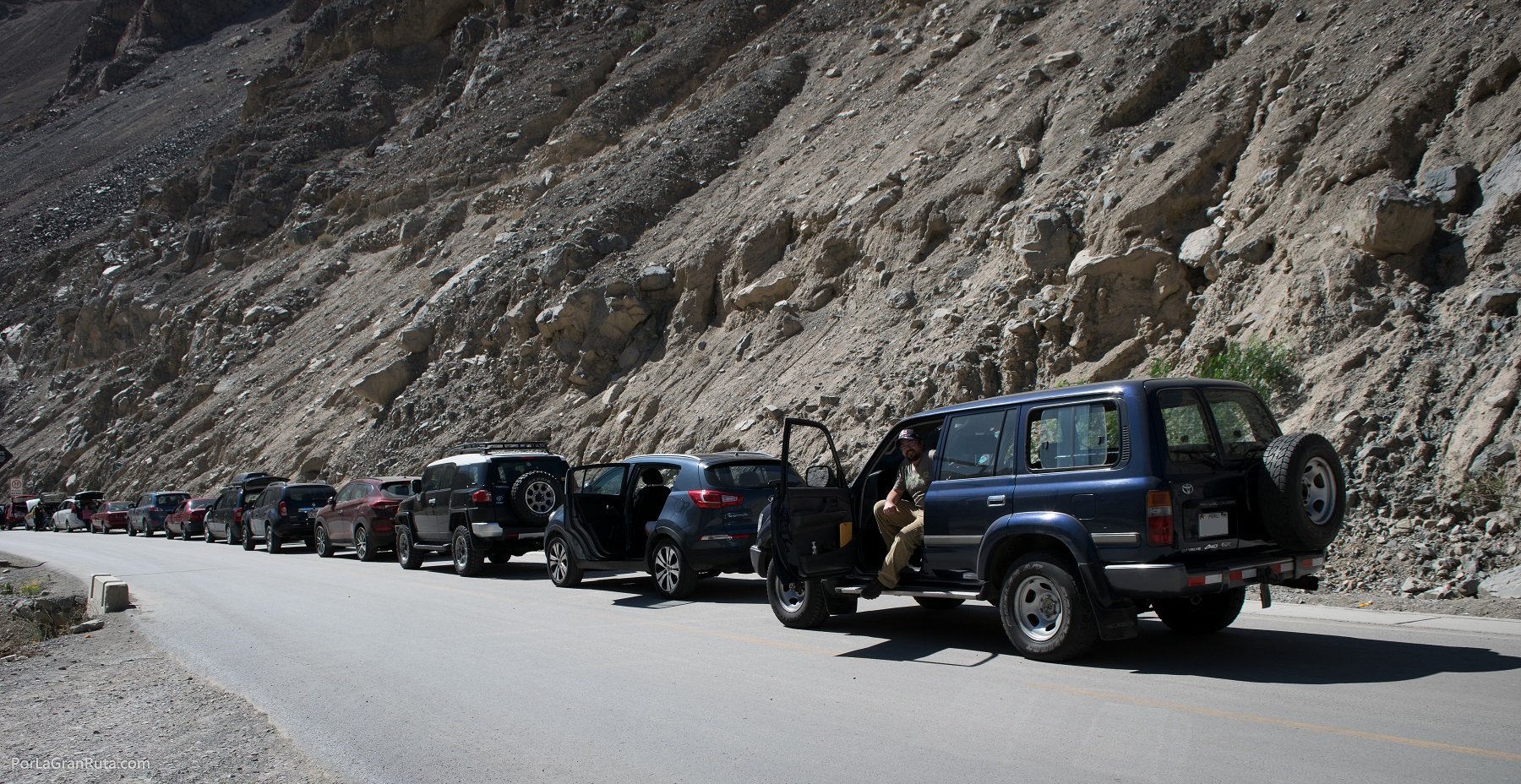 Cerca de las 10:20 am nos encontramos con una fila larga de autos estacionados, todos bloqueados por el cierre de la carretera que ya nos habían advertido. Pregunté al guardia y me dijo que dada la cantidad de autos que habían, y por ser fin de semana, abrirían la pista al medio día. Ni modo, nos tocaría estacionarnos y esperar. La recomendación aquí para quien piense viajar allá en estos días, es salir bien temprano como para pasar por este tramo antes de las 9am y evitar así el bloqueo de la pista.