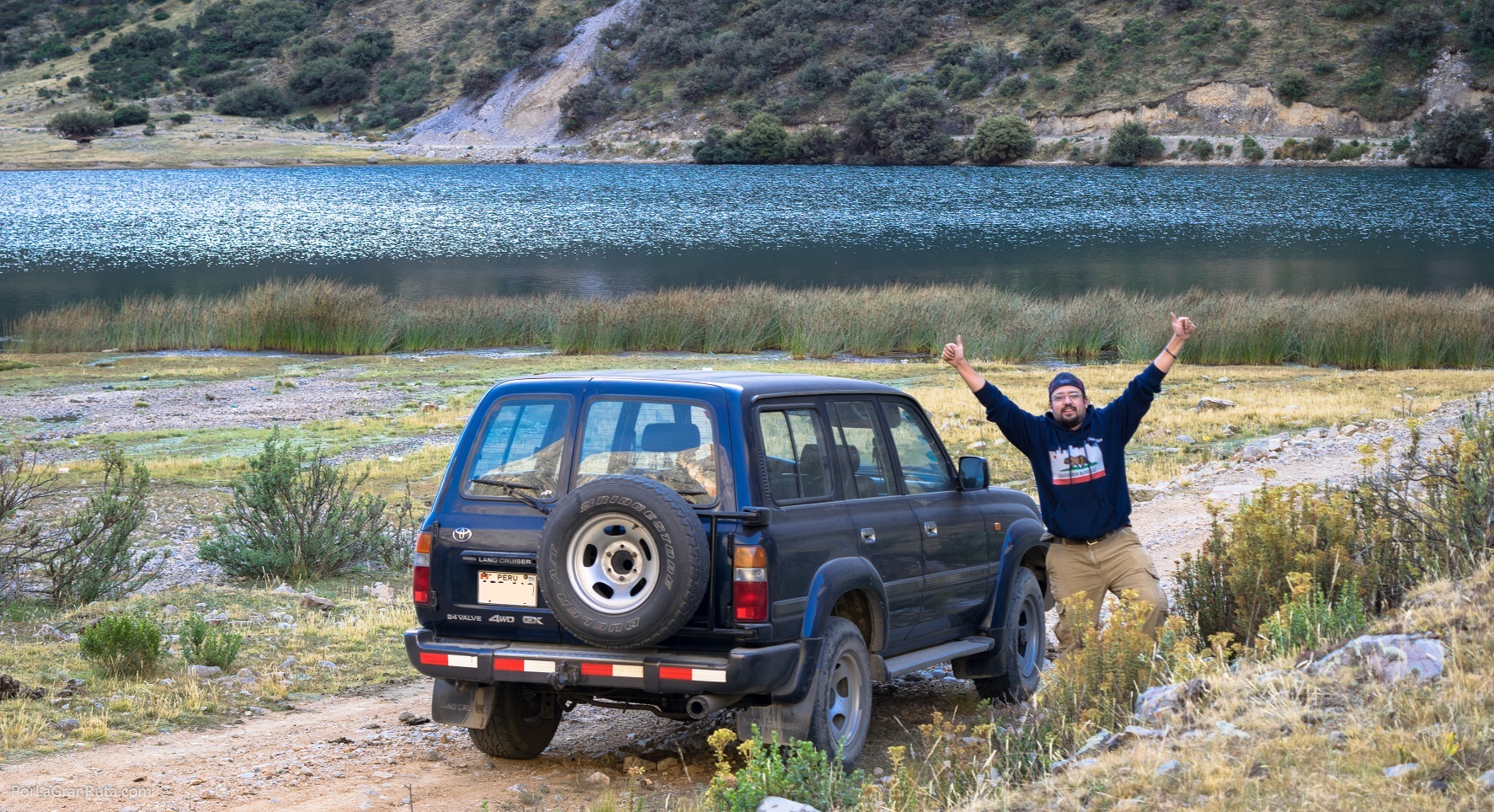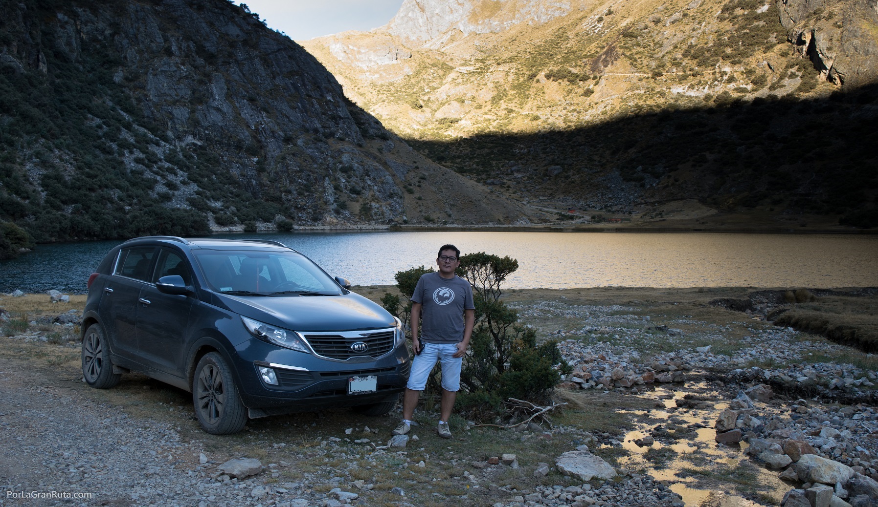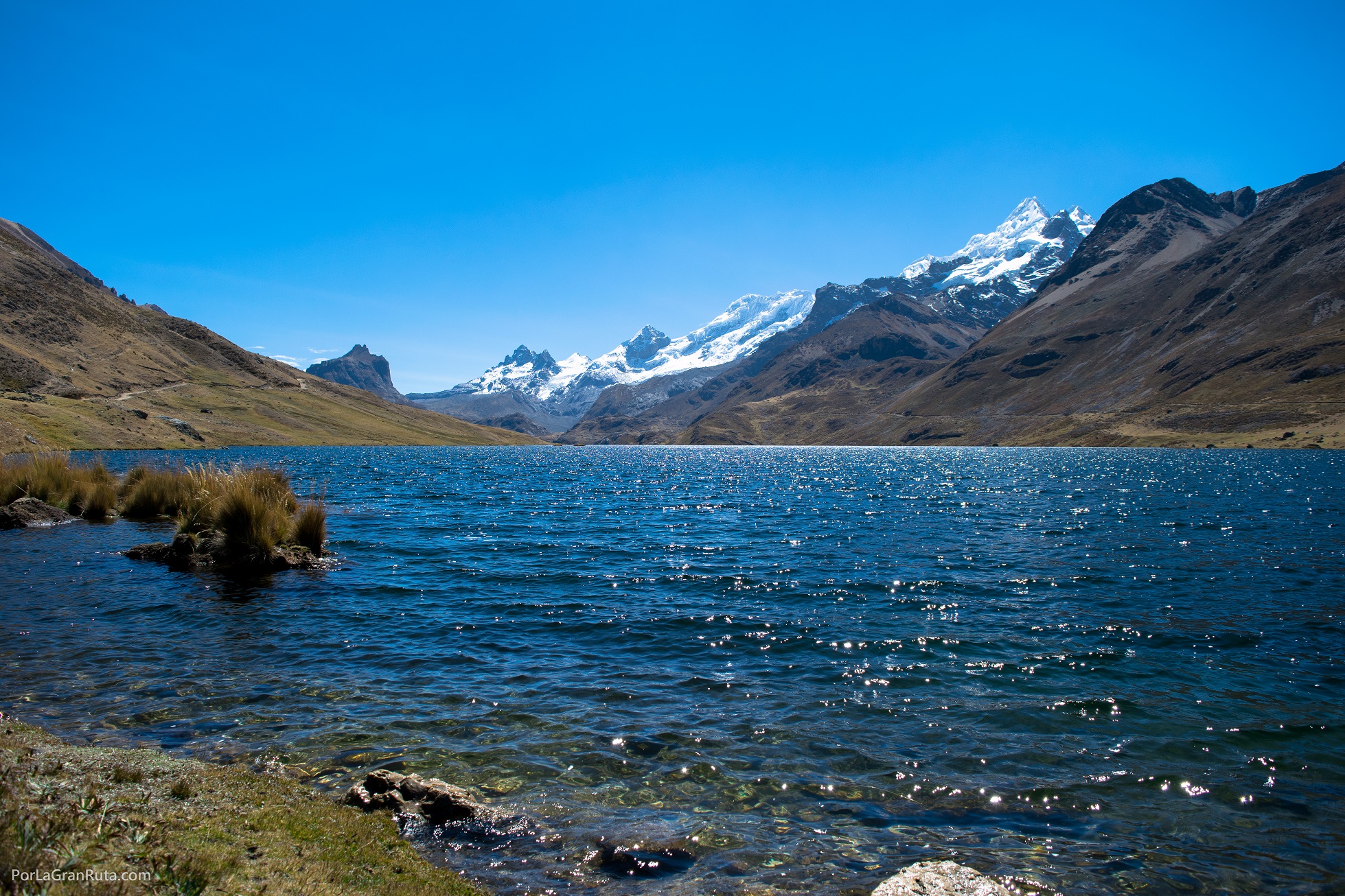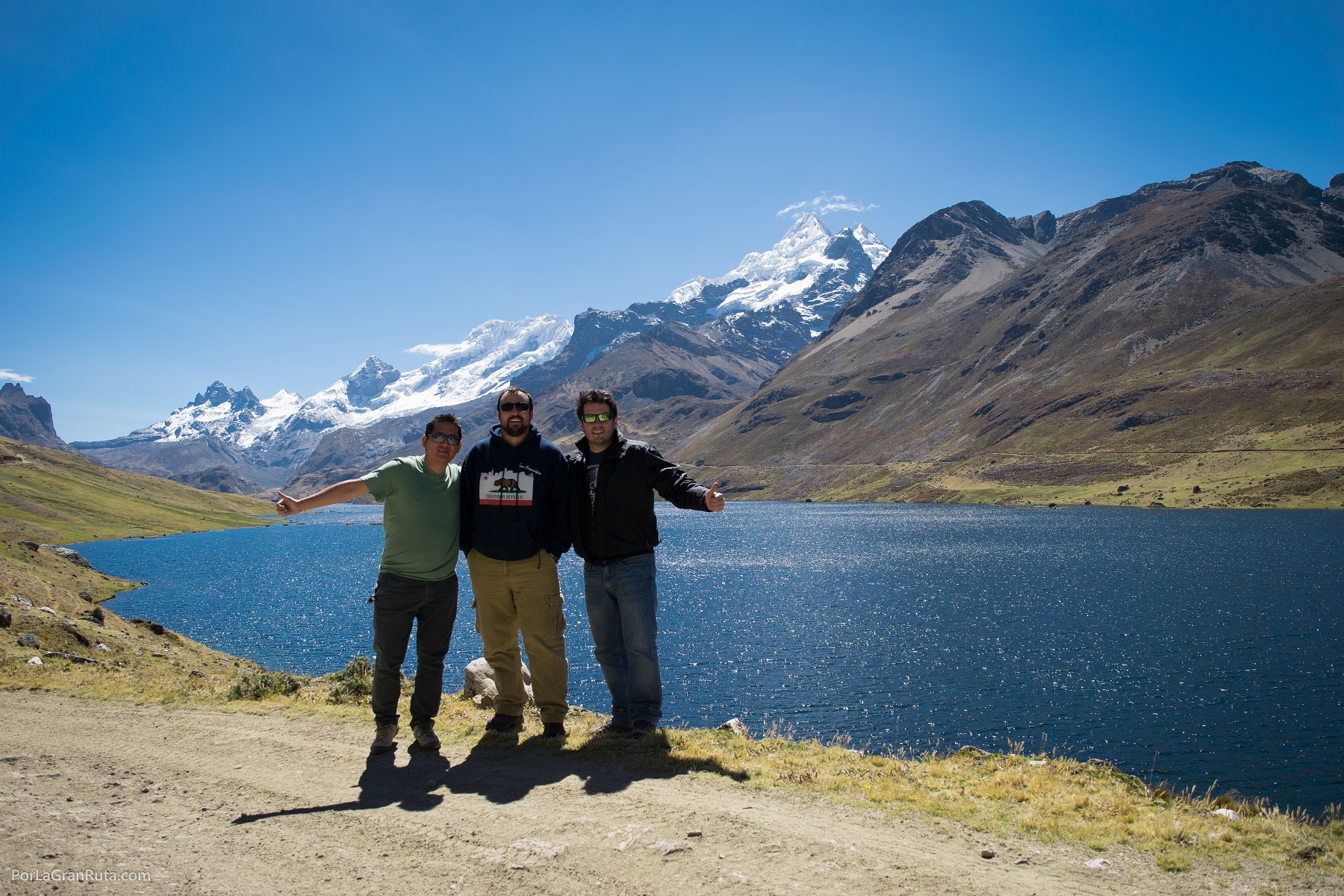 Cuando llegamos a la laguna nos quedamos asombrados. Era mucho más bonita de lo que salía en las fotos. La laguna es inmensa (luego leí que tiene 7 km de largo). El cielo estaba completamente despejado, los nevados al fondo lucían imponentes y el agua cristalina. En la zona no había nadie más que nosotros tres. Nos quedamos un buen rato a descansar, tomarnos muchas fotos y disfrutar del maravilloso paisaje. Había valido la pena. Aunque no llegamos a conocer la laguna Patón, estábamos muy contentos con nuestra decisión ir a Surasaca.