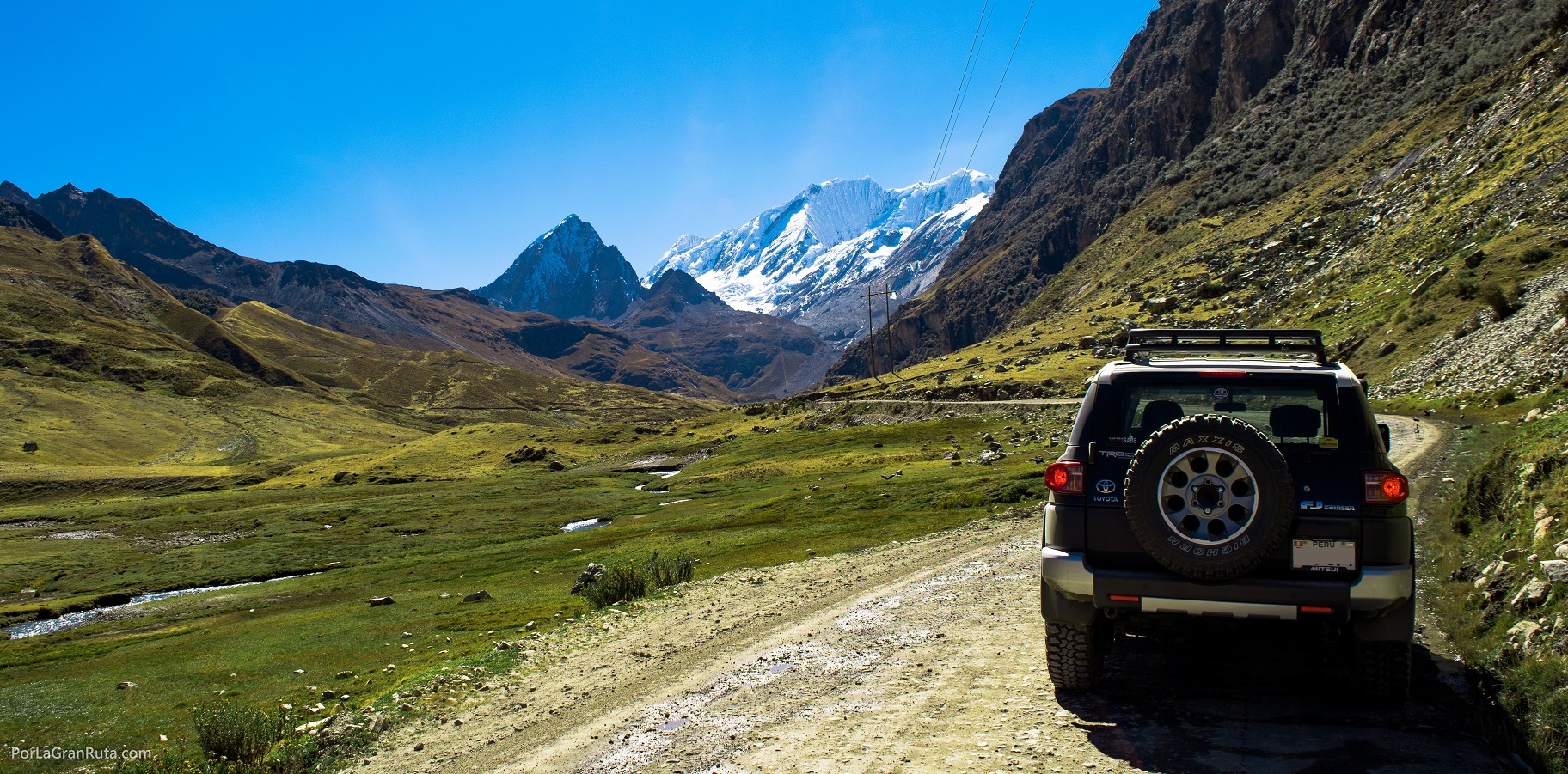 Pasando el pantano, un poco más allá, y sobre la izquierda, hay un pequeño puente que marca el desvío hacia Surasaca. Nos salimos entonces del camino que va hacia Raura y entramos, tras cruzar el puente, por una trocha carrozable en mal estado. Por momentos era bien empinada y tenía huecos por todos lados. Este último tramo hasta Surasaca fue de unos 4 kilómetros, pero nos costó un poco transitarlo. Max tenía el carro más bajo y en una parte tuvo que retroceder un poco para volver a intentar la subida. Estábamos cerca de 4500 msnm.