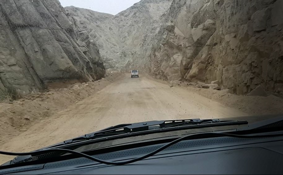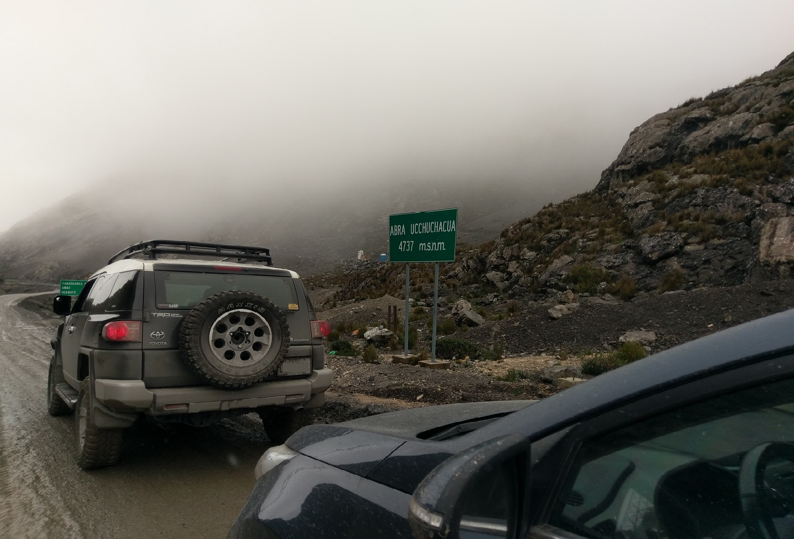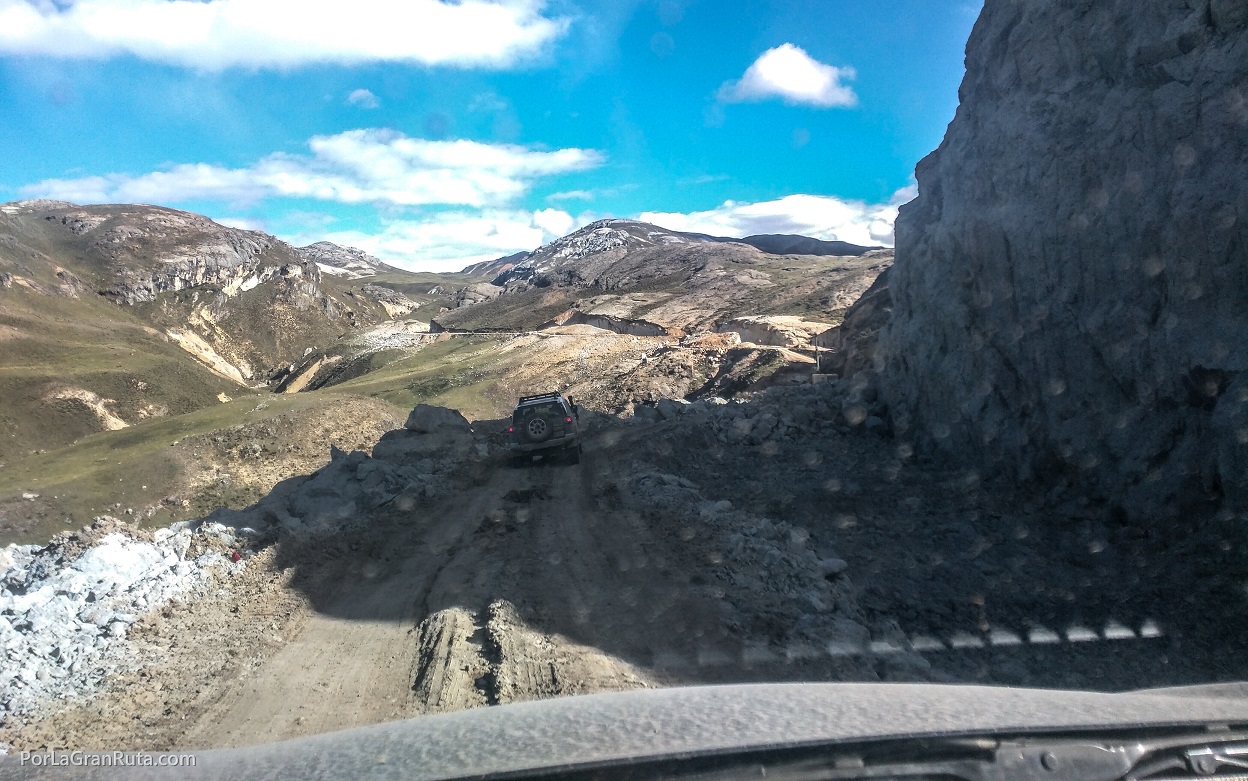 Más tarde nos daríamos cuenta que, posiblemente, la decisión no fue la más acertada. Entre Huayllay y La Viuda, varios tramos estaban en pésimas condiciones, mucho peor de lo que habíamos pasado el día anterior. El camino era una seguidilla de derrumbes y las piscinas de agua y barro venían una tras otra. En dos oportunidades tuvimos que bajar de las camionetas a revisar el camino a pie, pues las condiciones eran tales que había un alto riesgo de quedarnos atollados. Sumado a esto estaba la casi inexistente señalización, tanto así que en una ocasión nos salimos de la ruta, tomamos un desvío de forma errónea y tuvimos que dar vuelta en U para regresar al camino original.