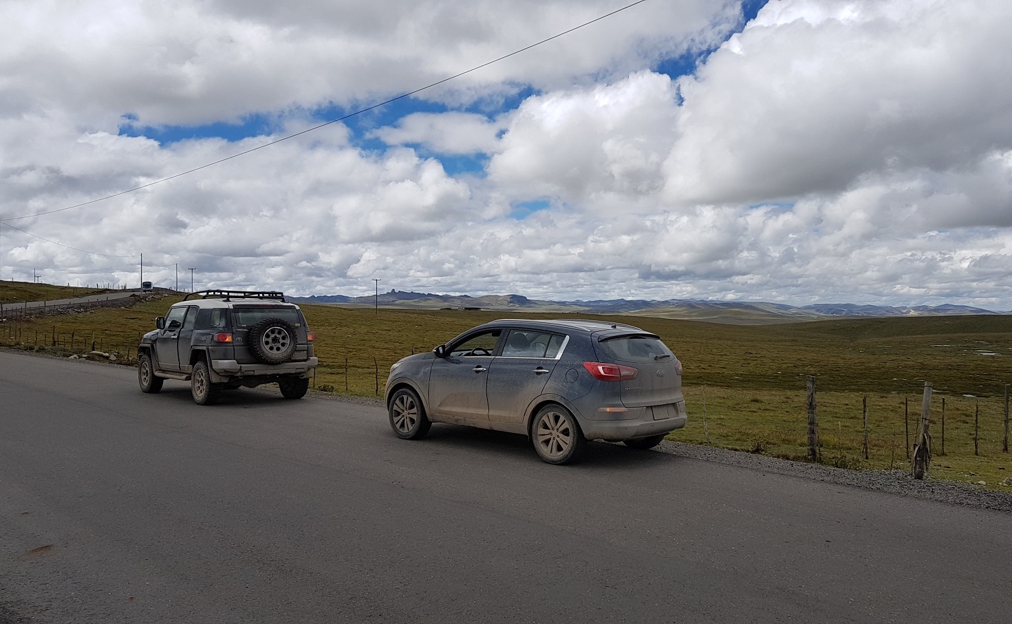 Luego de las fotos de rigor seguimos nuestro camino. El recorrido hasta Cerro de Pasco transcurre a través de un campo o pampa inmensa, popularmente conocida como la Meseta del Bombón. Paisajes increíbles nos acompañan a ambos lados de la carretera. En algunos puntos es posible, incluso, divisar los nevados de las cordilleras de la Viuda y Huayhuash.